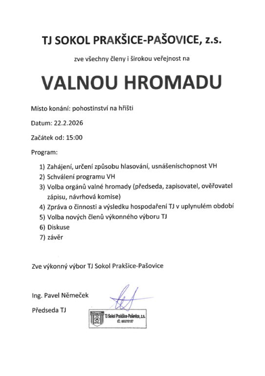 TJ Sokol Prakšice - Pašovice 22.2.2026