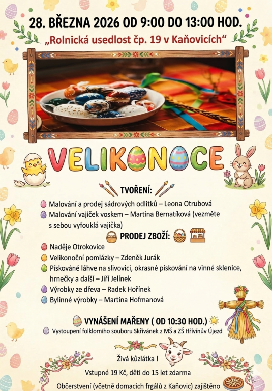 Pozvánka na Velikonoce v Kaňovicích 28.3.2026 od 9.00 do 13.00 hodin