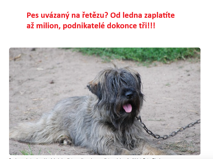 Držet psy dlouhodobě uvázané na řetězu je v Česku od ledna zakázané. Stanovuje to novela zákona o ochraně zvířat proti týrání.